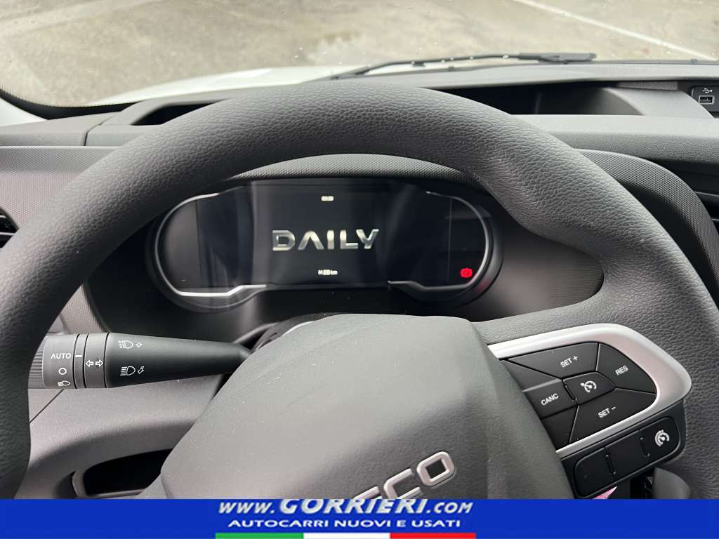 Motore F1C 160CV EURO VIE, Cambio mecc. 6 vel. , PASSO 4100, BATTERIA 105AH (AGM), Pneumatici 195/75 R16 estivi, Scarico motore centrale, Serbatoio carburante 63 L, Serb. urea 20 L s. cab, Ricarica USB autista, Pesi 1.900 – 2.600 kg, Terza chiave con telecomando, Climatizzatore automatico, Chiusura centr con telecomando, BIANCO IC 194, Compressore clima 170 CC, Model Year 2024, Tergi. e luci anab. auto., Cruise control, Immobilizer, Filtro carburante riscaldato, Sedile aut. 3° molleggiato, Panca biposto cinture 3 punti, MY IVECO T. radio 7″, Balestrini post. suppl., Specchi retrov. elettr. risc., Telecamera posteriore,