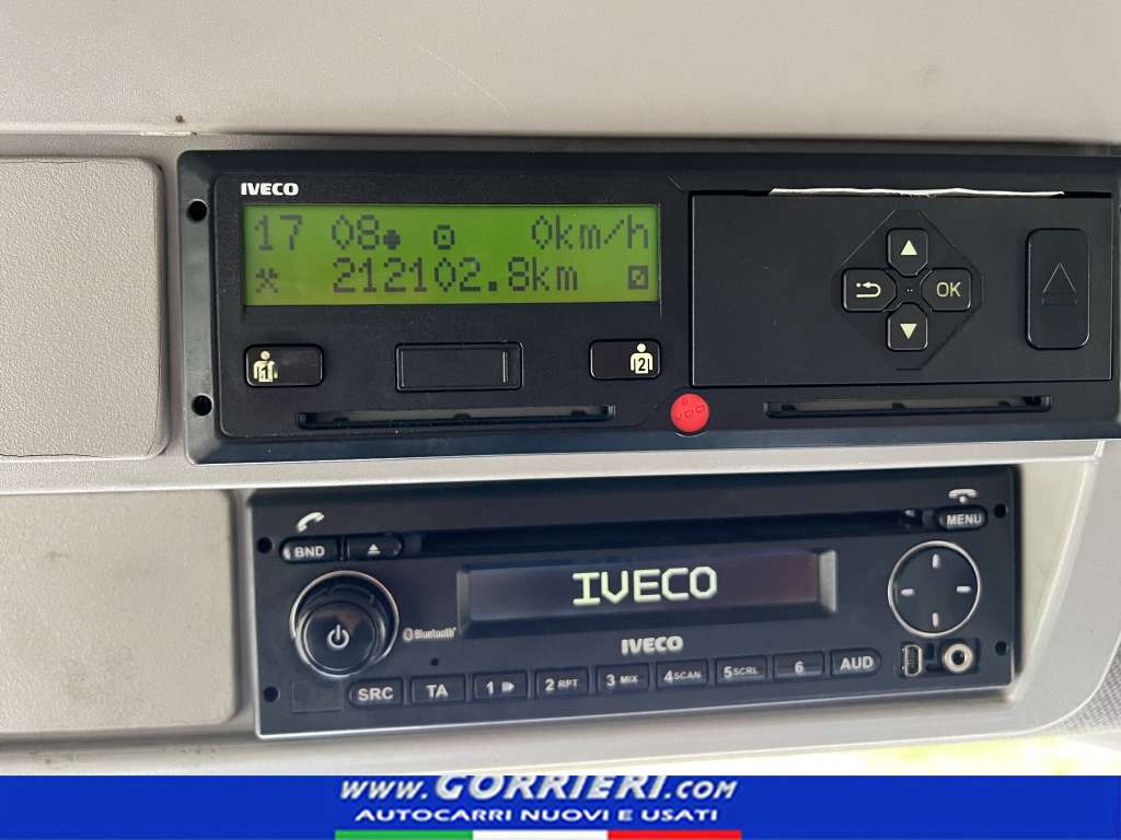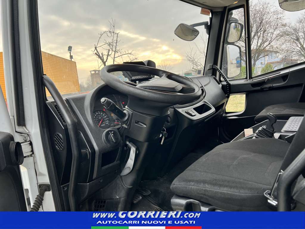 Iveco Eurocargo 100-190P, 05/08/2016, km 212.102, Cambio automatizzato ZF 6 vel, sosp. Pneumatiche posteriori, passo 4185, Specchi retr per larg car 2600, spoiler, Serbatoio combustibile 200L, Serbatoio AdBlue 30 litri, Alzacristalli elettrici, Barra appendiabiti, Carichi 3.600 – 6.800, Immobilizer, Chiusura porte centr, Climatizzatore regolaz manuale, BIANCO IC 194, Cruise control, Fari fendinebbia, Lavaproiettori a getto, Mobiletto centrale, Sed aut pneum tessuto, Sedile passeggero singolo, Radio bluetooth, Specchi retrov. elettr. risc., Parti plastica colore cabina,