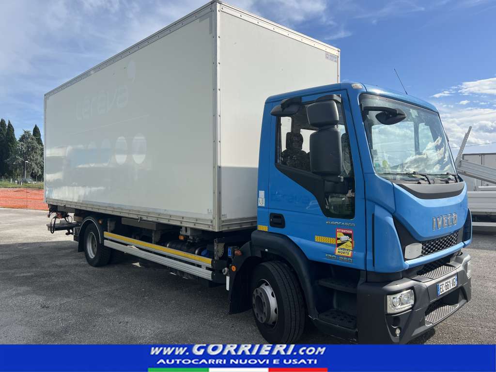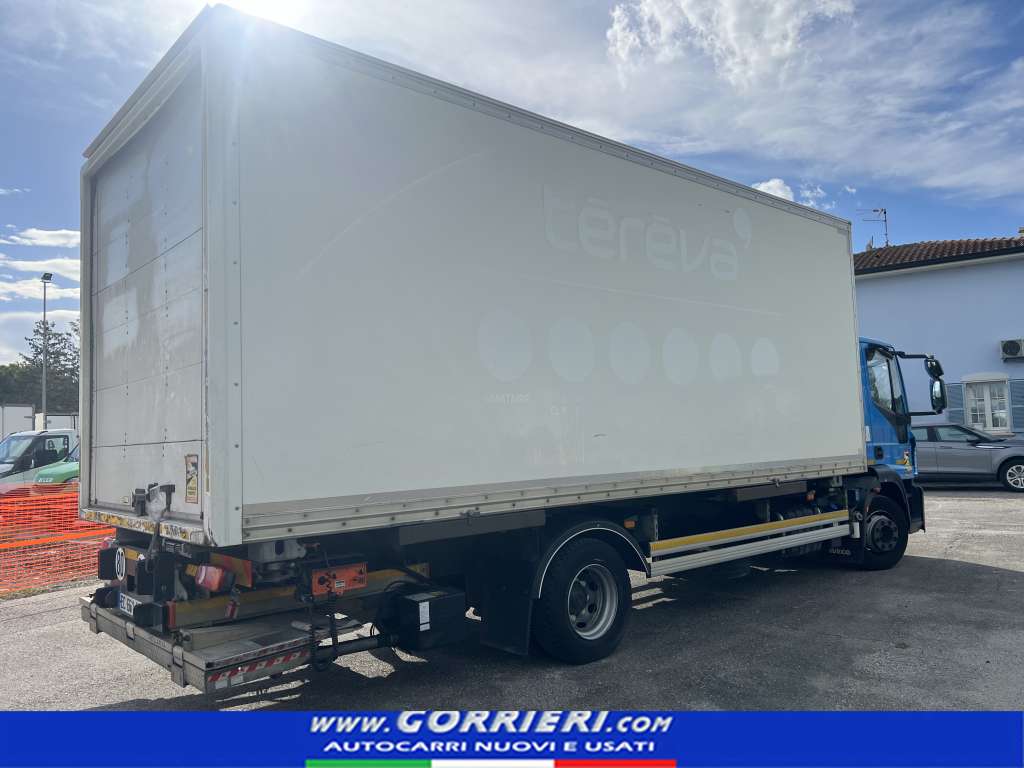 Iveco Eurocargo 120-250FP, 06/06/2016, km 323.702, passo 4815, Sospensioni Pneumatiche integrali, Cambio automatizzato ZF 6 vel, Tector 7 con SCR 6,7 lt – 6cilindri, Pneumatici 265/70 R 19.5, Serbatoio combustibile 200L, Serbatoio AdBlue 30 litri, Alzacristalli elettrici, Barra appendiabiti, Immobilizer, Chiusura porte centr con telec, Climatizzatore regolaz manuale, BLU CHIARO IC 051 (SIMILE AL RAL 5015), Cabina con finestr. post., Radio bluetooth, Specchi retrov. elettr. risc., Sponda caricatrice Dhollandia 2.000kg,